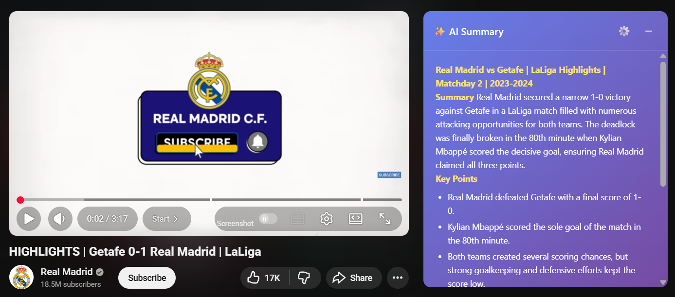 This led me to search for a video summarization tool. While options like NotebookLM can do exactly this, I decided to build my own Chrome extension for the challenge and learning experience.